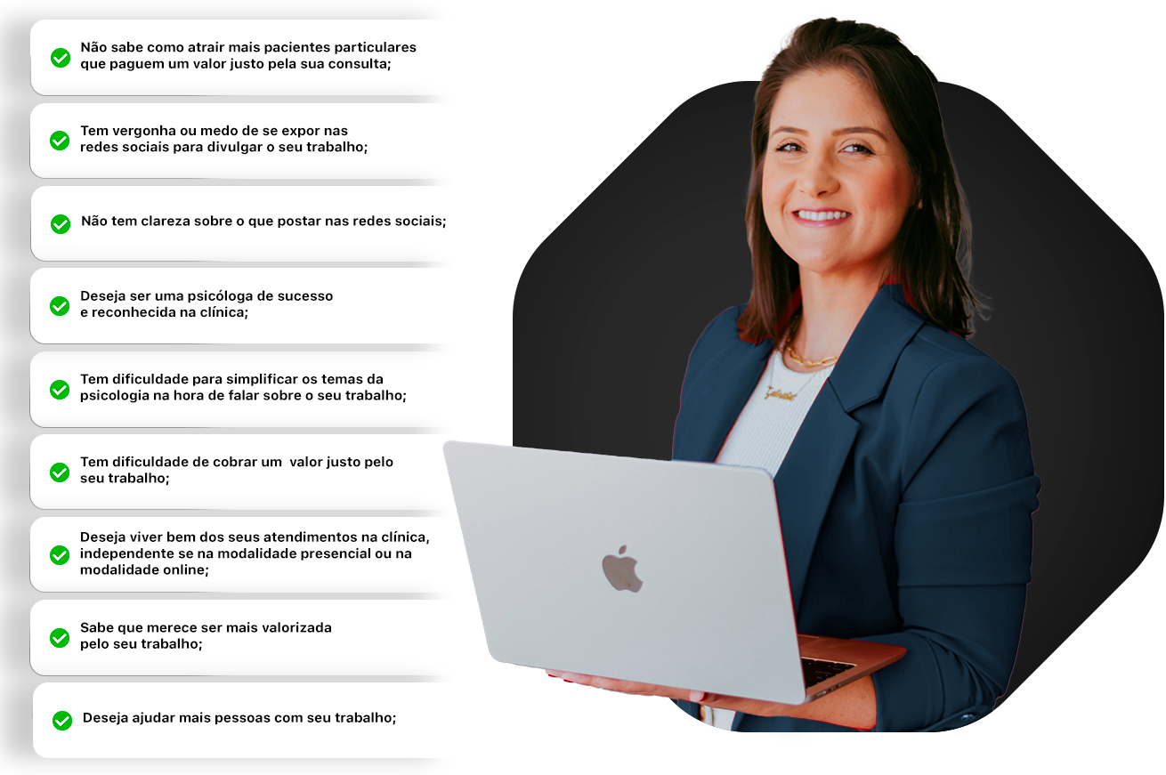 Se você é psicólogo(a) e sente dificuldade em atrair pacientes de forma ética e consistente, sim — este conteúdo foi feito especialmente para você. O Desafio foi criado por quem entende as dores da profissão e já passou pelas mesmas inseguranças. Aqui, você vai aprender estratégias práticas, com linguagem clara e focadas na realidade do psicólogo clínico, mesmo que você nunca tenha feito marketing antes. É possível, sim, construir uma agenda cheia e viver da sua profissão com propósito.