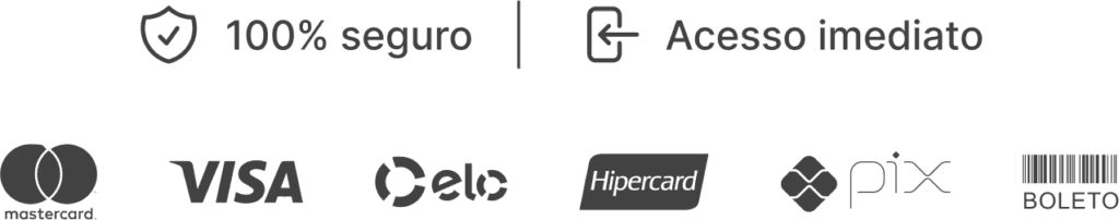 Cartão de crédito (até 12x) ou PIX à vista. O pagamento é 100% seguro, processado pela Hotmart, a maior plataforma de